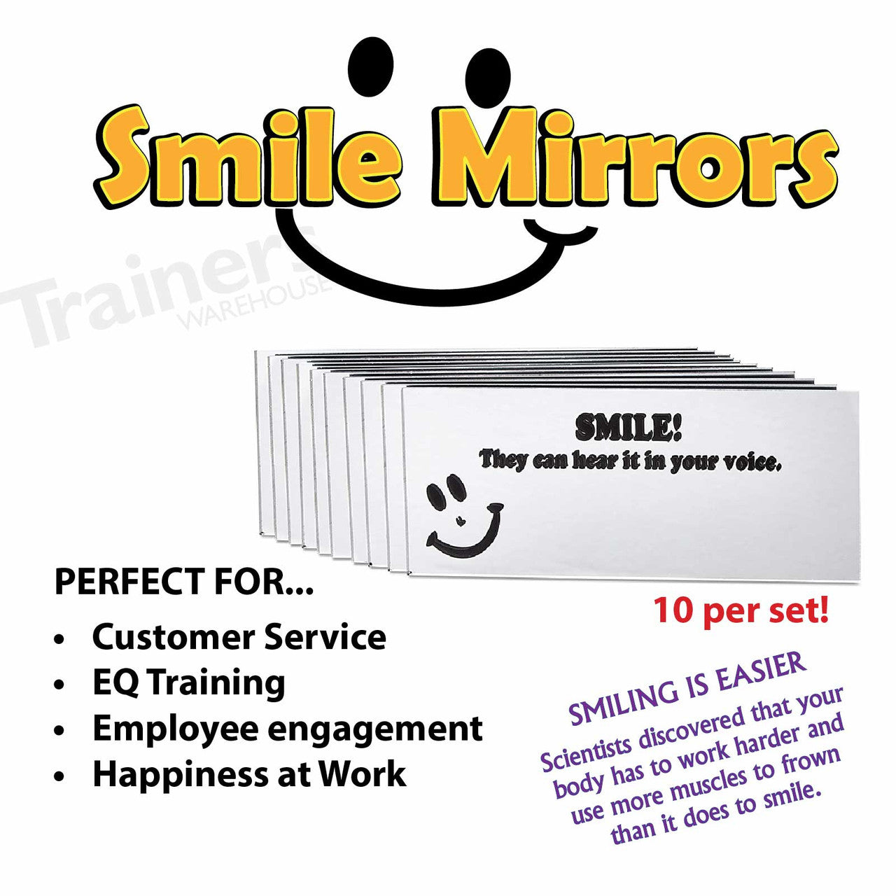 Classic Smile Mirrors – 10-Pack are a powerful tool for building positive workplace culture. Whether used with call centers, customer service reps supporting external clients, or employees serving colleagues within the organization, these mirrors reinforce the importance of showing up with a positive attitude. A smile doesn’t just change how you feel—it changes how others perceive you, creating engagement, loyalty, and organizational success. It's great as a non-verbal communication tool for customer service, call center, or office settings—helping staff maintain tone, warmth, and professionalism.