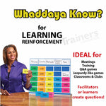 Whaddaya Know?™ Tabletop Game Board is a customizable, Jeopardy-style quiz game that transforms training sessions into interactive learning experiences. With this interactive review game for corporate training, facilitators introduce new material, review past lessons, or strengthen knowledge retention. Best of all, learners can take the lead by creating their own questions—when participants become the teachers, they internalize content at a much deeper level.