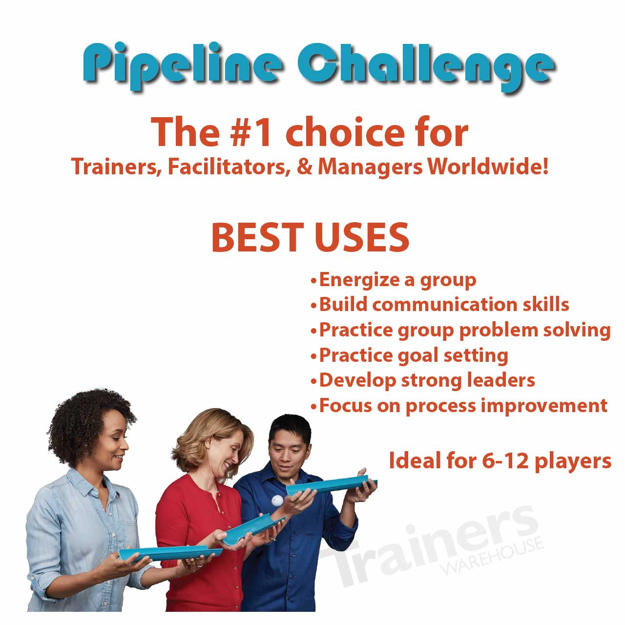 Unit price perEnergize your group with your very own Pipeline Game. Give each participant one short length of half pipe and challenge the group to deliver a ball down the pipes from the starting point to the finish line. A successful pipeline team building activity requires participating groups to exercise excellent communication, creativity and teamwork.